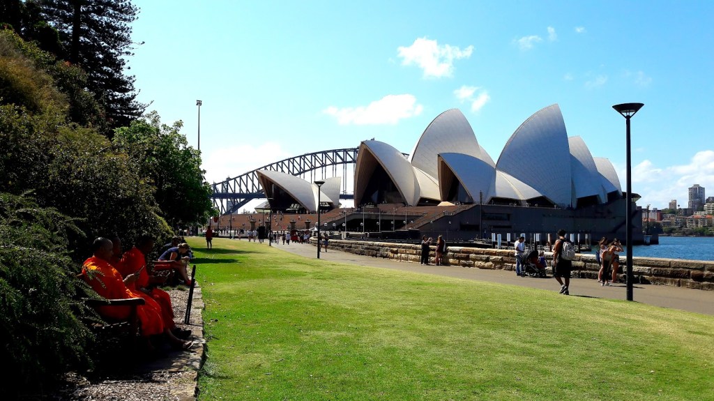 En allant de chemins en chemins, on finissait par se retrouver sur le tracé qui longeait la baie et ainsi, face à l’Opéra de Sydney. Il paraissait bien plus impressionnant que sur toutes les photos qu’on pouvait voir sur Internet ou à la télévision. L’architecture était incroyable mais c’était surtout l’environnement qui le rendait si magnifique. L’Harbour Bridge juste derrière ajoutait à la grâce de l’endroit, ainsi que la mer et l’éclat du ciel bleu. On s’asseyait sur une rambarde en béton et on réalisait sûrement à ce moment que oui, nous étions en Australie. C’était le début d’une nouvelle vie.