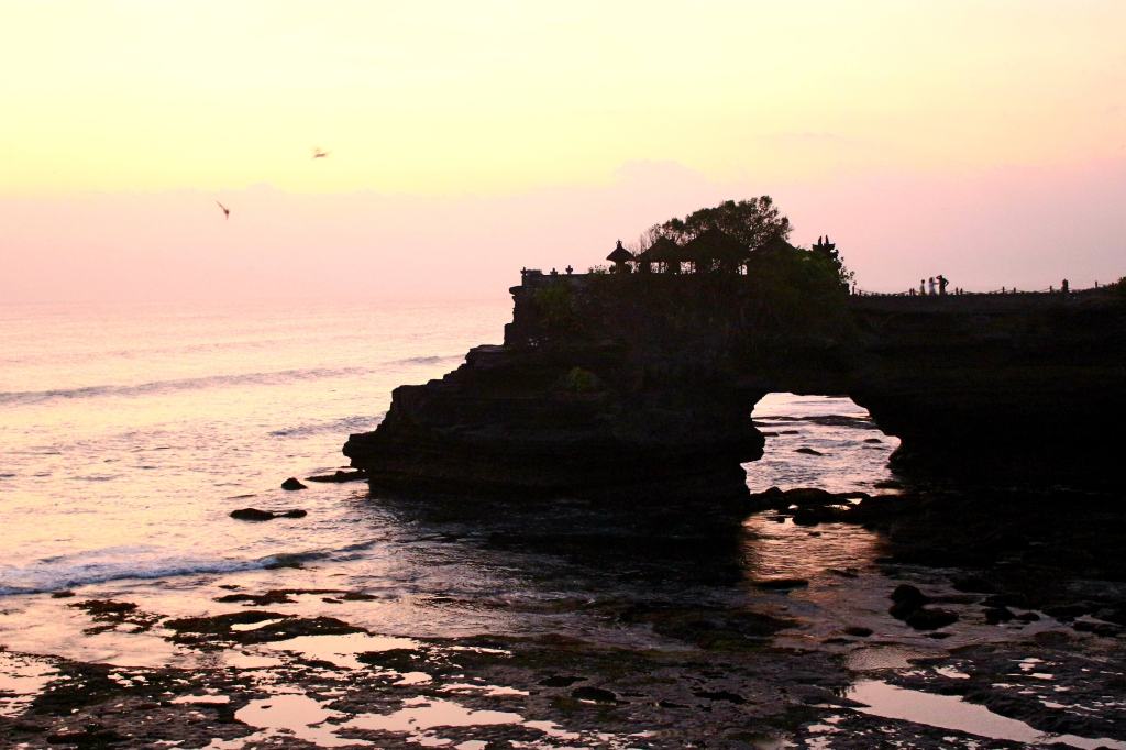 Sur la route du second temple, il nous montrait même des endroits où commander un Uber et on arrivait au temple Tanah Lot un peu plus savants. On avait clairement atterri à Disneyland. Il y avait des dizaines de petites boutiques, des dizaines de restaurants et des centaines de touristes. Ce temple avait la particularité d’être construit sur la plage et d’être légèrement surélevé, ce qui en faisait un spot parfait pour prendre des photos du coucher de soleil. La fête était un peu gâchée par la multitude de personnes (dont nous évidemment) mais aussi par un énorme nuage à flanc d’horizon qui couvrait complètement la descente du soleil. C’en était presque comique de voir tous ces gens venus exprès pour ça repartir la queue entre les jambes. On restait quand même quelques temps pour prendre des photos à la tombée de la nuit. On marchait ensuite trois kilomètres pour rejoindre un restaurant et on rentrait finalement à la maison non sans avoir encore eu de nouveaux déboires avec Uber.