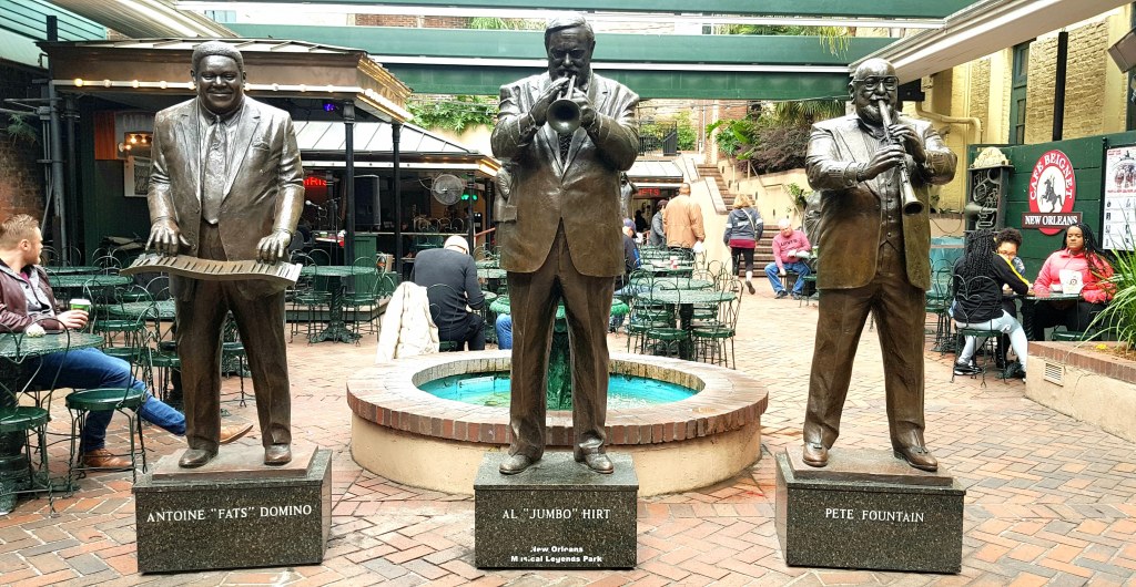 Pour les mélomanes avertis que nous étions, New Orleans avait tout de la ville de rêve. Les monuments hommages aux figures du jazz et du rythm and blues affleuraient à tous les coins de rue. La statue de Fats Domino faisait figure de passage obligé, pour lever son chapeau à la reconnaissance du talent fou de cet artiste. Le moindre musicien de rue jouait des notes d’une beauté absolue et les maisons colorées qui bordaient les rues semblaient se nourrir de cet ensemble. Malgré le temps gris, la découverte nous épatait. Cette ville nous faisait l’effet d’une ville peu touristique mais follement authentique, dans son jus. Elle ne lissait pas sa culture, ne se laissait pas aller au culte du beau absolu pour exister.