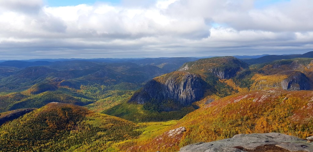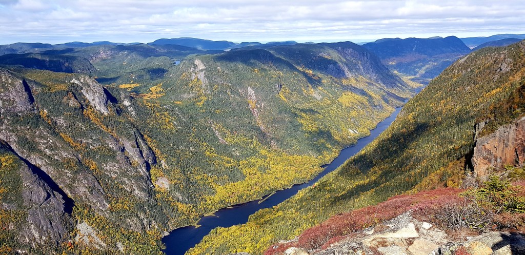 Le panorama était absolument stupéfiant sur la réserve mondiale de la biosphère de Charlevoix, protégée par l’Unesco. Sous nos pieds, dans un à-pic de 700 mètres, s’étendaient les plus hautes falaises de l’Est canadien, encadrant la sinueuse rivière Malbaie. Nous avions continué notre route vers les deuxième et troisième sommets, admirant la ligne de crête recouverte d’un tapis d’arbres, de verdure et de roches millénaires, vestiges du bouclier géologique canadien. Le froid et le vent mordant avaient persisté, mais nous étions finalement arrivés au bout du chemin, où nous nous étions arrêtés pour manger. Il était difficile d’imaginer un meilleur endroit pour pique-niquer, et fatigués par l’effort, nous avions grignoté en silence, les yeux perdus dans l’immensité qui s’étendait devant nous. Au loin, nous apercevions des lacs sauvages, que nous nous imaginions inexplorés et peuplés d’une faune magnifique.