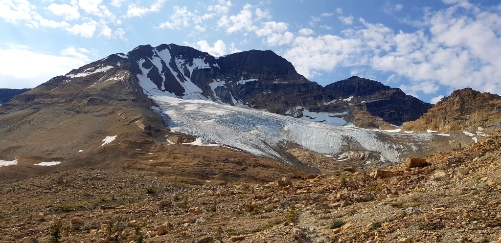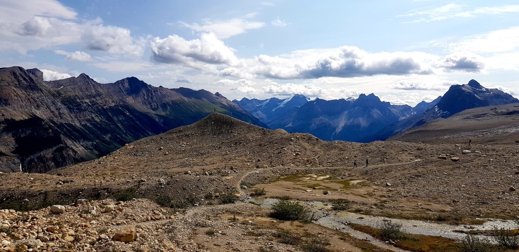 Passablement énervés par cette mauvaise rencontre dans un cadre si idyllique, nous n’arrivons même pas à comprendre la logique derrière leur agacement. C’est une simple voix qui sort de notre enceinte, ce qui revient au même que si nous avions été plusieurs à parler bruyamment, et quand bien même, nous marchons beaucoup plus vite qu’eux, le désagrément était de toute manière de courte durée. Heureusement, la beauté de l’endroit sort cette altercation de nos esprits. Une fois sortis des bois, nous nous trouvons dans un paysage où des ruisseaux glacés sillonnent une prairie pleine de verdure et puis au bout de la pente, voilà enfin la crête. Sur deux kilomètres, nous marchons sur des monticules de cailloux bordés par des glaciers encore enneigés malgré l’été et qui déversent leur eau dans de petit lacs d’altitude à l’eau gelée. Heureusement que le soleil est au rendez-vous car les températures peuvent descendre très bas, même en août.