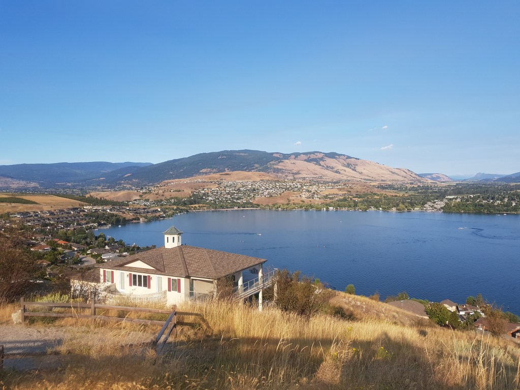 Après nos dix kilomètres de balade le long du canyon, nous reprenons la voiture pour descendre sur Kelowna. Ville principale et cœur de la Okanagan Valley, région viticole principale du pays, Kelowna est une grande bourgade ceinturée de collines, de vignes et de vergers. Elle a aussi l’immense avantage d’être située au bord du gigantesque lac Okanagan et de posséder un grand nombre de plages. C’est une des grosses destinations touristiques de la Colombie Britannique, ce qui explique le flux continu de voitures sur la route en ce week-end prolongé. La région est réputée pour son climat estival très chaud et ensoleillé et c’est peu dire que cela nous change des Rocheuses dans lesquelles nous étions il y a de cela seulement quelques jours. Les températures dépassent aisément les 30 degrés.
