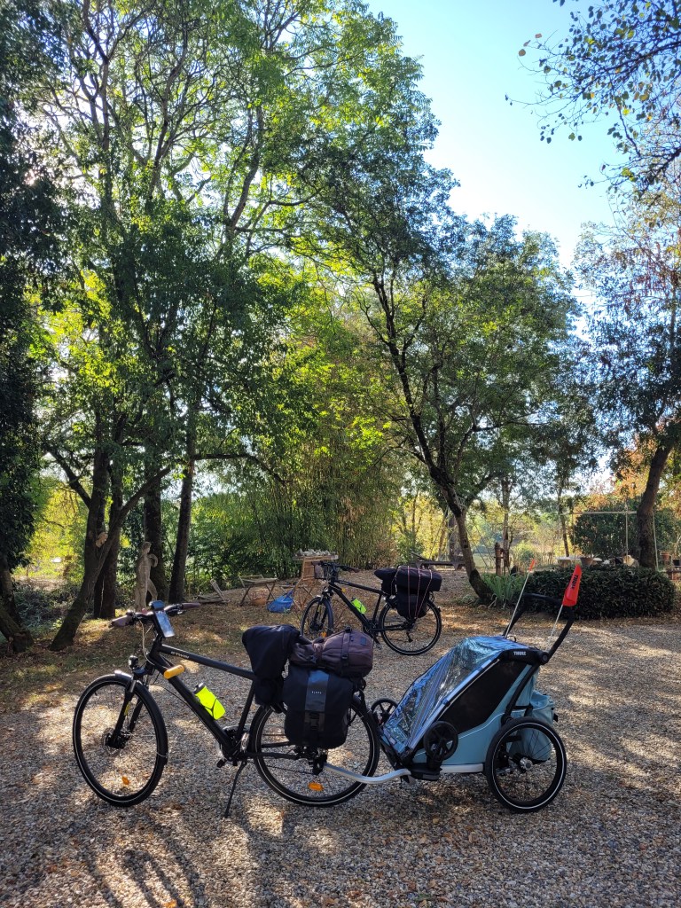 Un autre couple nous pose les mêmes questions au camping de Meilhan-sur-Garonne. Enfin, devant le camping car il est déjà fermé et même le café n’est pas ouvert. C’est l’un des écueils du cyclotourisme hors saison haute, beaucoup de lieux dédiés sont déjà fermés alors que nous sommes seulement fin septembre.