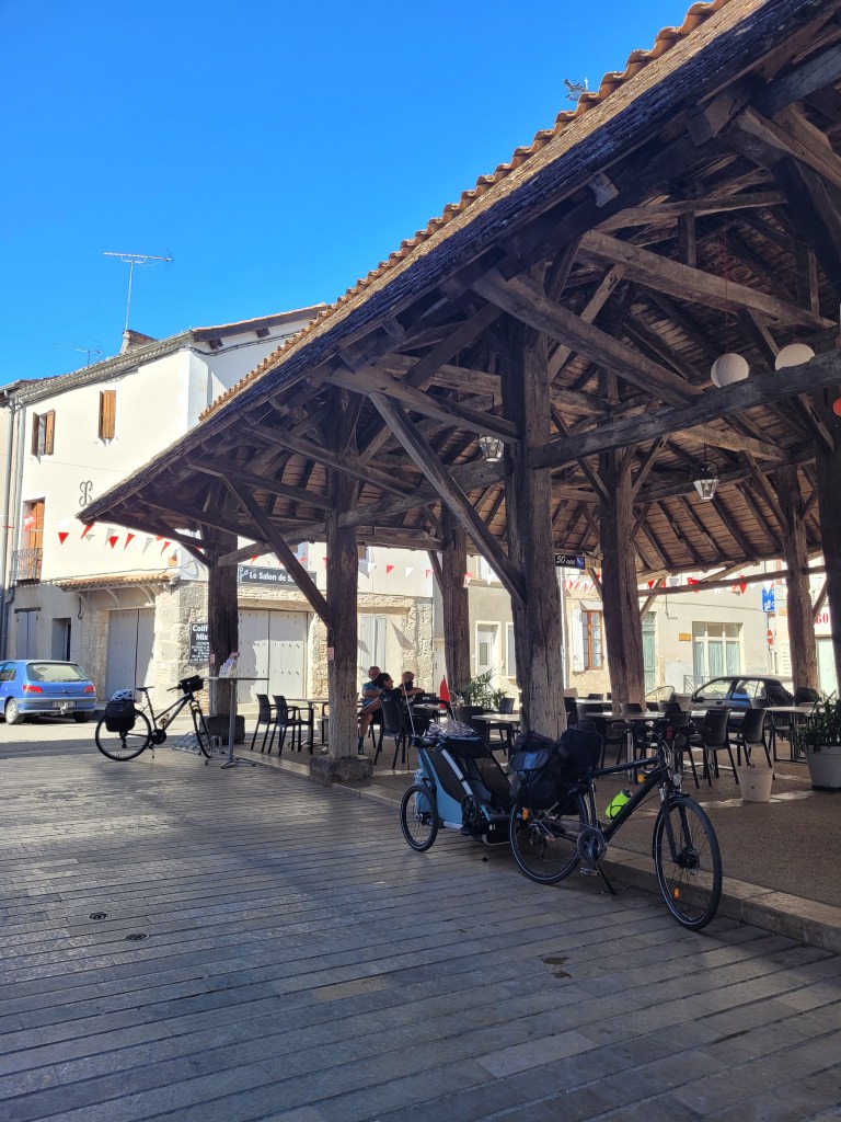 Nous mangeons au Bistro de la Halle en compagnie d’Hollandais rigolos qui font le chemin dans le sens inverse. Ils sont plus jeunes que nous, n’ont pas d’enfants et ils s’interrogent sur la difficulté de voyager à vélo avec un bébé de sept mois. Leurs questions nous rappellent nos propres doutes d’avant départ et nous réalisons qu’ils ont été levés en quelques secondes sur la route.