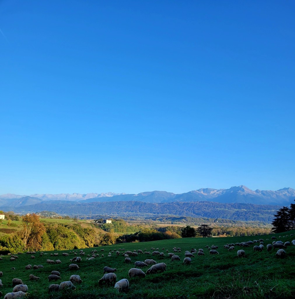 Au petit-déjeuner, Isabelle nous raconte l’histoire de sa grande maison. D’abord une ferme puis une usine de plastique, l’endroit a aussi été une salle de concert avant de devenir une très grande chambre d’hôtes. Dehors le soleil brille comme en plein été, aucun nuage n’est à l’horizon. Nous partons à 9h30 pour poursuivre notre montée sur la Belle Via.