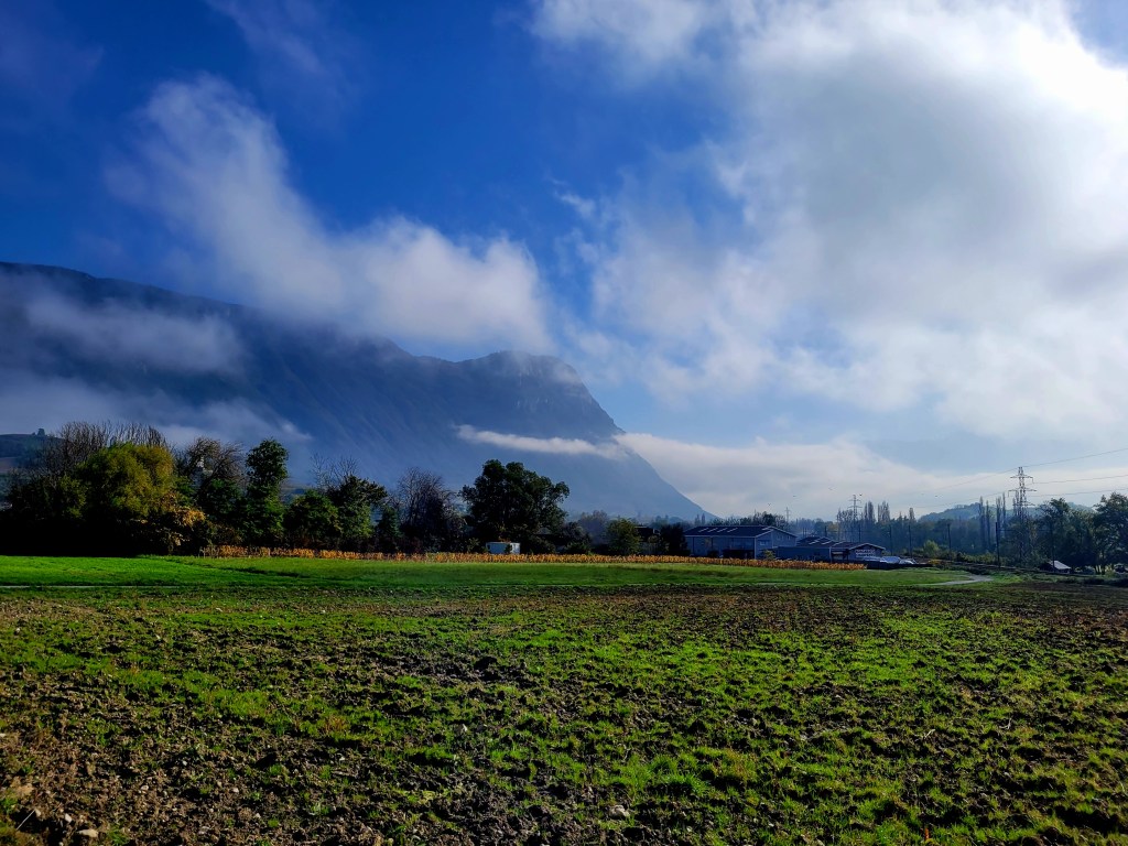 À 10 heures, nous retraversons le petit village très passant de Porte-de-Savoie pour aller rattraper la Belle Via à quelques kilomètres. Nous sommes fiers et excités car nous la bouclons aujourd’hui. L’étape qui nous attend est courte, 33 kilomètres seulement, mais salutaire quand on la compare à l’étape précédente.