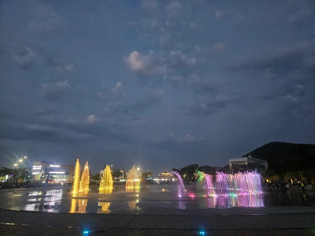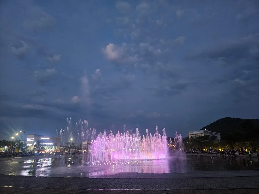 On mange sur place et on s’installe sur la place des fontaines pour voir un spectacle de sons et lumières que Cassandre a déniché. Dans ce spectacle, plusieurs jets d’eau répartis sur une place centrale de 2500 mètres carrés sont synchronisés avec des musiques et des lumières de toutes les couleurs. Le jet d’eau central atteint notamment une hauteur d’eau impressionnante de 55 mètres et l’ensemble de cette fontaine peut produire diverses formes. Le spectacle est époustouflant de par sa prouesse technique et Clémence comme nous sommes enchantés.