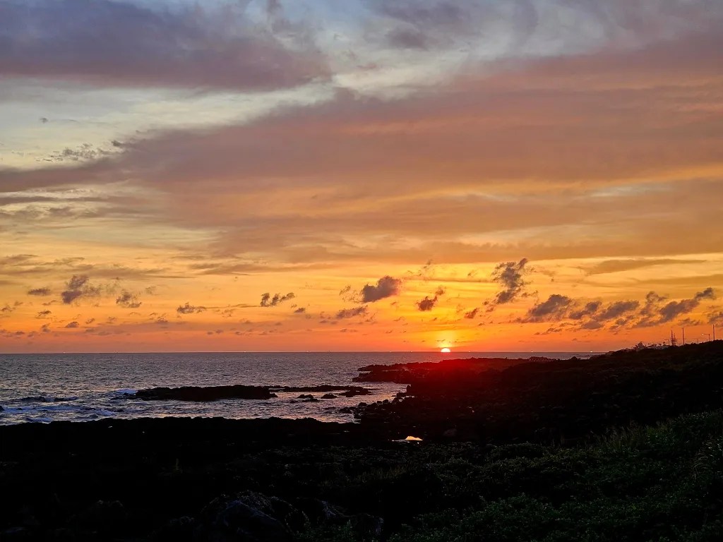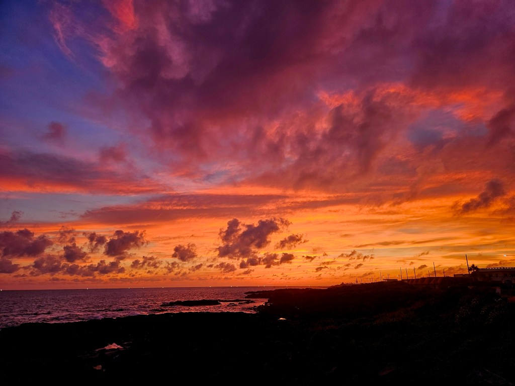 Cette partie de l’île abrite une grande population de dauphins et il est apparemment très facile d’en apercevoir depuis le rivage à n’importe quelle heure de la journée donc on tente d’aller en observer au coucher du soleil à un point de vue qui se situe à quelques minutes à pied de notre logement. Nous n’en verrons malheureusement pas mais le coucher de soleil valait quand même le détour. Peut-être aurons-nous plus de chance demain?