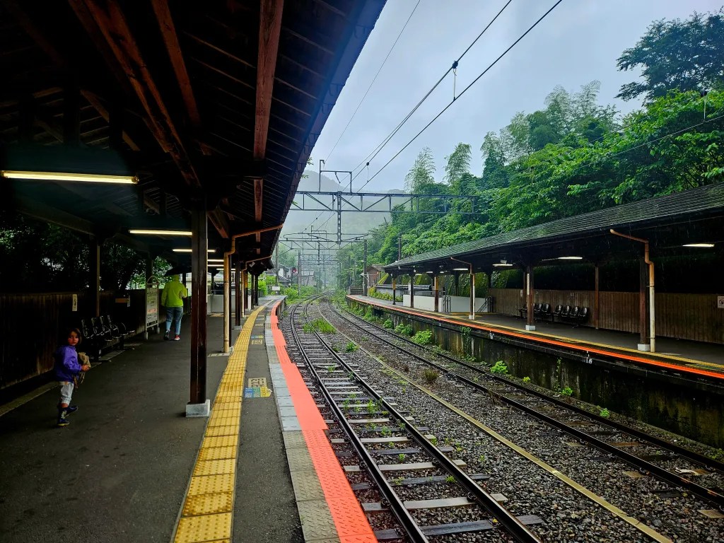 En arrivant à la gare pour repartir, on réalise qu’il n’y a pas de machine automatique pour payer son ticket comme à Fukuoka. Le chef de gare nous explique qu’on ne peut pas payer par carte dans cette station. Il nous écrit donc un petit papier que l’on doit donner à la gare de Fukuoka en arrivant pour régler notre dû, ce que l’on fait. Les gares japonaises ont toujours des guichets pour corriger les erreurs de tickets. Mais là encore, le monsieur au guichet nous explique qu’ils ne prennent pas la carte non plus. On ne sait plus comment se débrouiller de cette histoire mais l’employé finit par abandonner et nous laisse sortir sans payer.