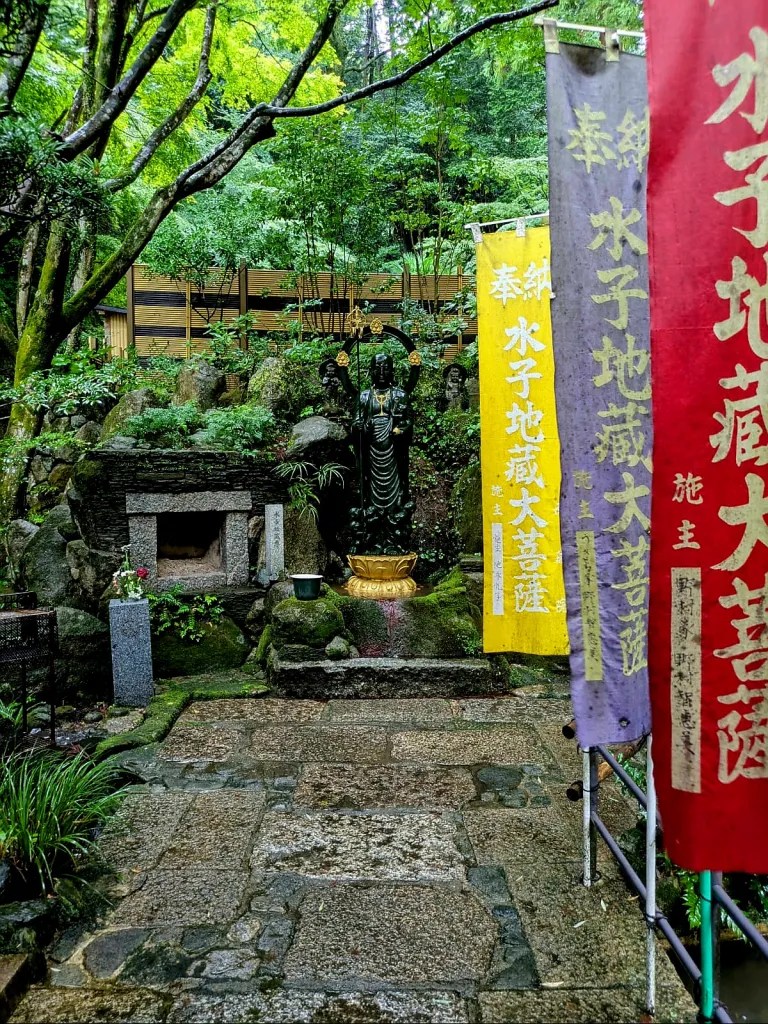 Notre train est un train local un peu vieillot mais les vues sur l’extérieur valent le coup. Il pleut quand il s’arrête en gare de Kidonanzoin-Mae et nous descendons avec les autres touristes pour aller visiter le temple Nanzoin qui doit sa renommée à son immense statue de bronze de Buddha allongé, la plus grande du monde. Une fois encore, on se fait avoir avec nos mauvaises habitudes coréennes. Là-bas nous pouvions absolument tout payer partout en carte de crédit. Nous avons retiré de l’argent au distributeur 2 fois seulement et surtout par précaution. C’est une autre affaire au Japon. La dame à l’entrée nous signale qu’ils ne prennent pas la carte. On doit monter à l’étage du hall principal du temple, demander à l’un des moines de payer sur son terminal puis redescendre montrer notre preuve de paiement. Décidement, rien n’est simple.