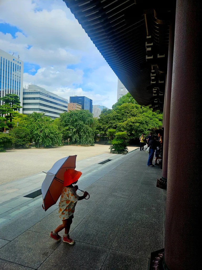 On installe notre serviette sous une grande ombrelle et on file jouer dans l’eau. Alors qu’on fait trempette, une occidentale arrive avec sa fille qui semble avoir le même âge que Clémence. Nos regards se croisent et on comprend vite que nous venons du même pays. C’est une française d’Annecy. Avec son mari japonais, elle vit ici depuis sept ans. Clémence joue avec la bouée de sa fille pendant que nous en apprenons plus sur ce que cela signifie de vivre ici. Elle réside à Kobe (se dit Kobé), une ville dont elle nous vante longuement les charmes.