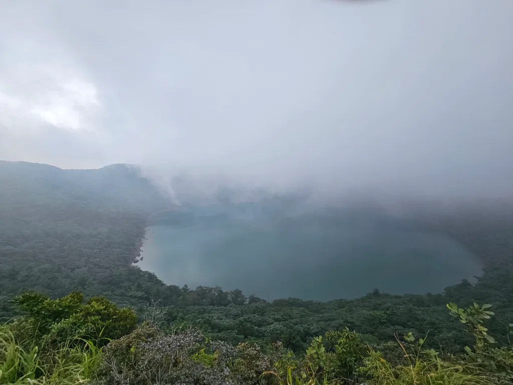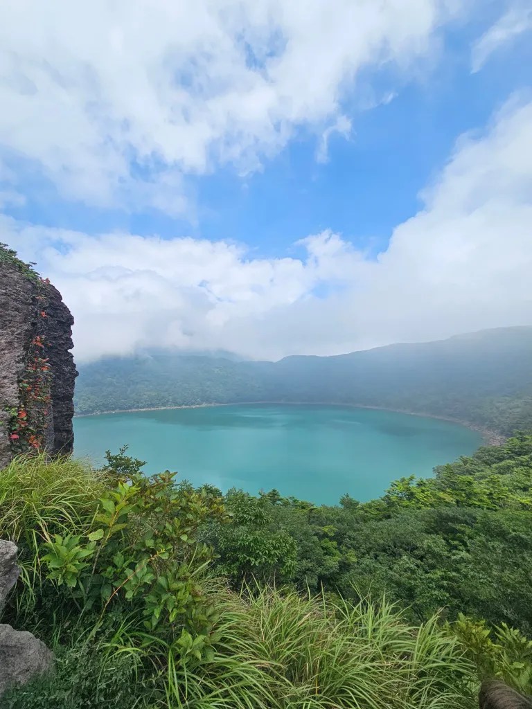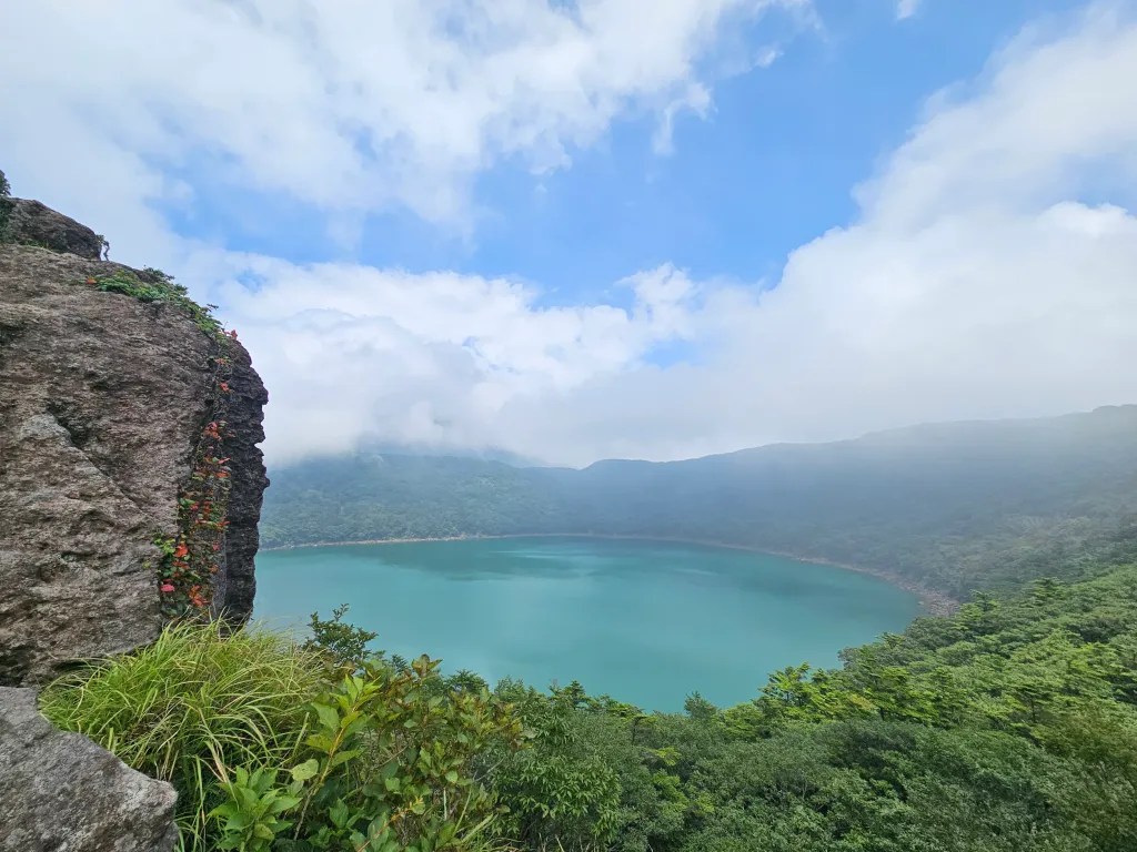 Une fois en haut, une boucle fait le tour du lac mais nous n’avons pas le temps de la finir car nous allons à un rythme enfantin. Ce n’est pas bien grave, il y a des nuages, du brouillard et de la fumée et nous n’apercevons le lac que par intermittence. Nous sommes tout de même tous les trois heureux de pouvoir marcher en pleine nature, de nous dégourdir les jambes et de faire un peu d’effort. Finalement, nous avons laissé les vélos il y a quatre jours et ils commencent à nous manquer. Très tranquillement, nous redescendons pour prendre le bus de 16h06 et pour rejoindre l’hôtel. Nous avons pris un hébergement assez spacieux et sympathique. Il y a même un espace de jeux pour les enfants et plusieurs bains chauds, ce qui occupe bien notre soirée. Une fois Clémence couchée, nous pensons à l’après et nous arrêtons une décision : nous retournons en Corée du Sud le 12 Août.