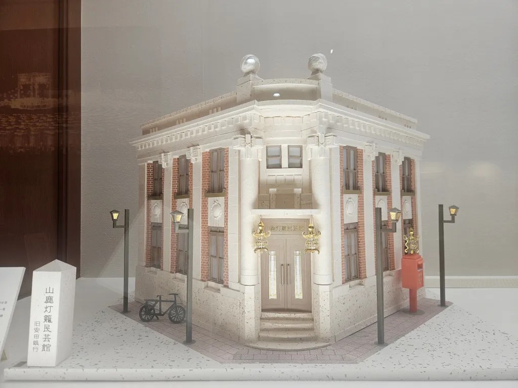 Nous prévoyons de visiter le musée de l’artisanat des lanternes qui font la réputation de la ville dans tout le Japon. Situé dans une ancienne banque des années 1920, il revient sur l’histoire des précieuses « toro » qui font la fierté des locaux. Fleurons de l’artisanat d’art local, les lanternes de Yamaga ont d’abord été fabriquées en bois puis en métal et au final en papier. Les artisans (seulement 7 actuellement) n’utilisent que quelques points de colle pour faire tenir l’ensemble qui se compose principalement de papiers découpés, pliés et emboîtés. La confection d’une lanterne nécessite beaucoup de précision et de patience. Les oeuvres qui prennent la forme de temples, châteaux et autres monuments sont absolument incroyables, on a du mal à réaliser qu’elles sont en papier. Pour qu’un artisan en réalise une, il faut compter 300 heures de travail soit 2 mois entiers !