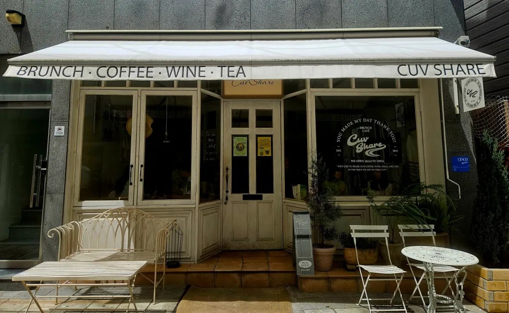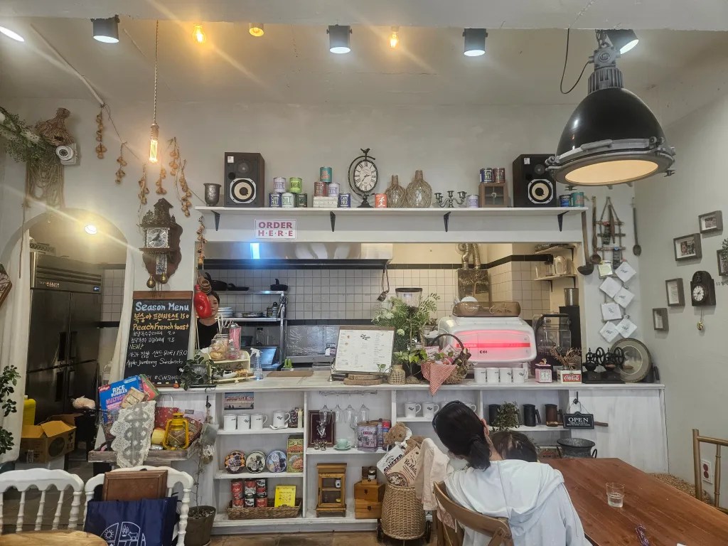 Il est plus de 9h quand nous émergeons. Pas particulièrement de programme aujourd’hui donc on ne se presse pas. Stéphane et Clémence vont prendre un bain et nous ne sortons de notre chambre que vers 10h30 pour aller prendre un petit déjeuner type brunch dans un café très cosy de notre quartier. On est aussi très contents de retrouver les jolis cafés coréens. Au Japon, ils étaient souvent petits, plutôt sombres et étroits. De plus, les cafés japonais ne proposent que très rarement des chocolats chauds, au grand désarroi de Clémence. On se régale de pain perdu, d’une assiette américaine et de boissons chaudes.