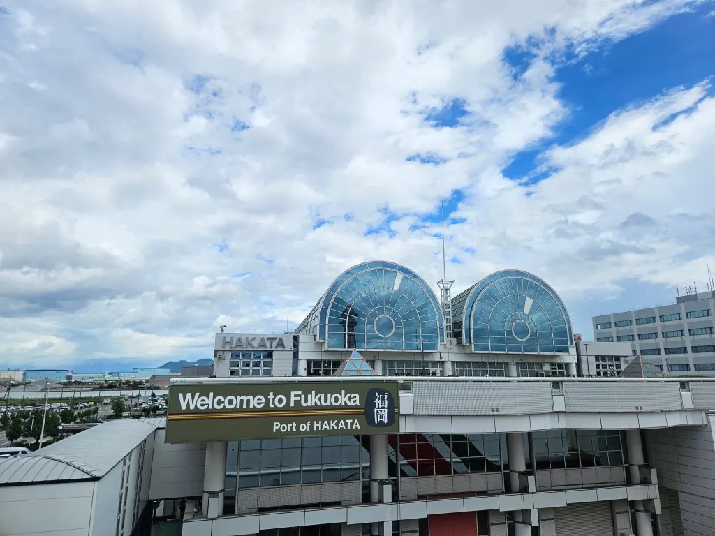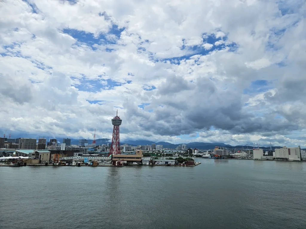 Ce n’est qu’une averse passagère et nous voici sur nos vélos pour rallier le port, à seulement deux kilomètres. La signalisation en caractères romans n’est pas géniale et nous mettons un peu de temps à trouver l’emplacement exact du terminal. Quand nous entrons, une queue de taille moyenne s’est déjà formée pour l’enregistrement. Nos billets sont déjà réservés et quand vient notre tour, nous n’avons qu’à tendre nos passeports pour recevoir nos tickets physiques. L’enregistrement des vélos se fait aussi de manière fluide, nous les amenons à un comptoir où un jeune homme les récupère en échange de 3000 yens (15€). C’est infiniment plus simple que prendre l’avion et notre poussette-remorque passe gratuitement, ce qui nous laisse encore plein d’incompréhension quant à la fois à Amakusa où nous avons dû payer 1000 yens pour une traversée de quinze minutes.