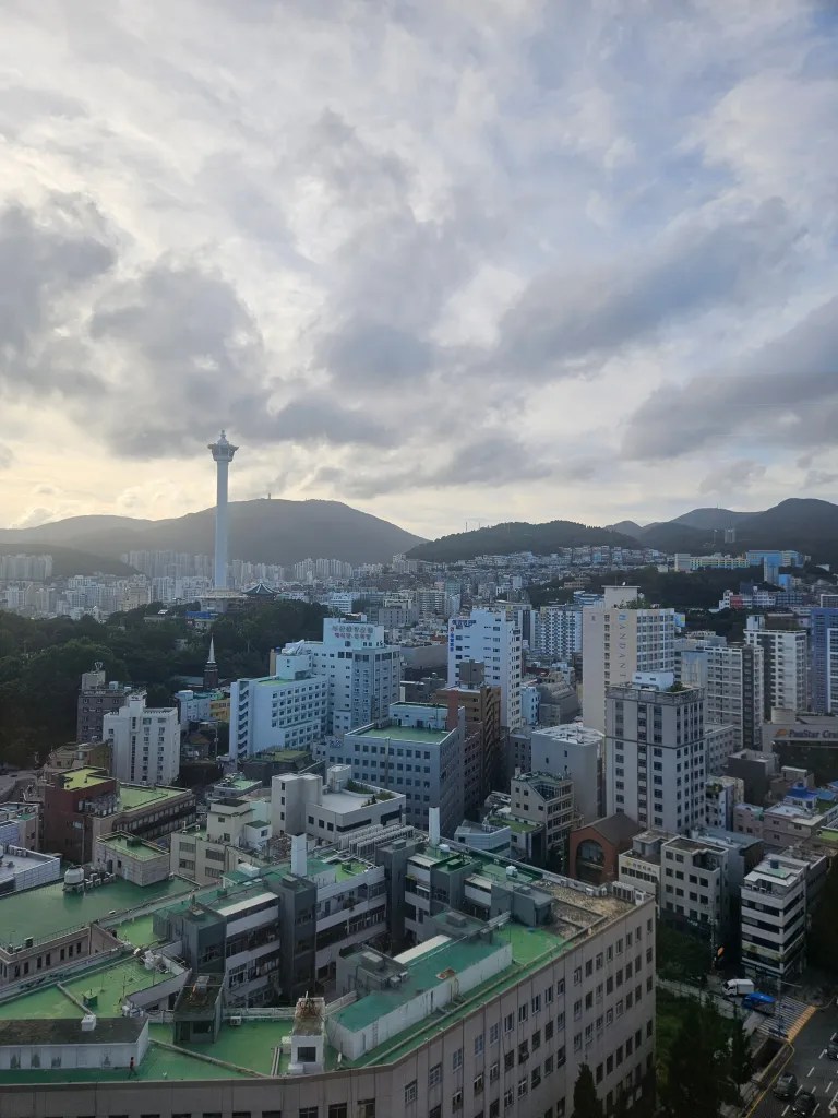 Stéphane profite de ce temps en solitaire pour aller écrire dans un autre café que nous avions pu tester lors de notre séjour à Busan deux mois auparavant. On se retrouve pour le goûter sur le toit du centre commercial du quartier qui abrite un sublime jardin en rooftop avec un point d’observation et un café (somptueux, comme à l’accoutumée). Nous étions déjà venus de nuit mais le panorama est vraiment beau de jour aussi. On voit clairement les différentes Busan : l’industrielle avec son port hyperactif, la montagnarde avec les immenses collines verdoyantes et l’urbanisée avec les gratte-ciels qui percent les nuages de toutes parts. Nous rentrons ensuite à l’hôtel pour couper la journée. Cassandre va courir pendant que Clémence a droit à vingt minutes de Tchoupi à la télé. Nous sortons ensuite manger dans une autre pizzeria du quartier où Clémence vole encore la vedette à tout le monde. Pas de doute, nous sommes bien de retour en Corée du Sud.