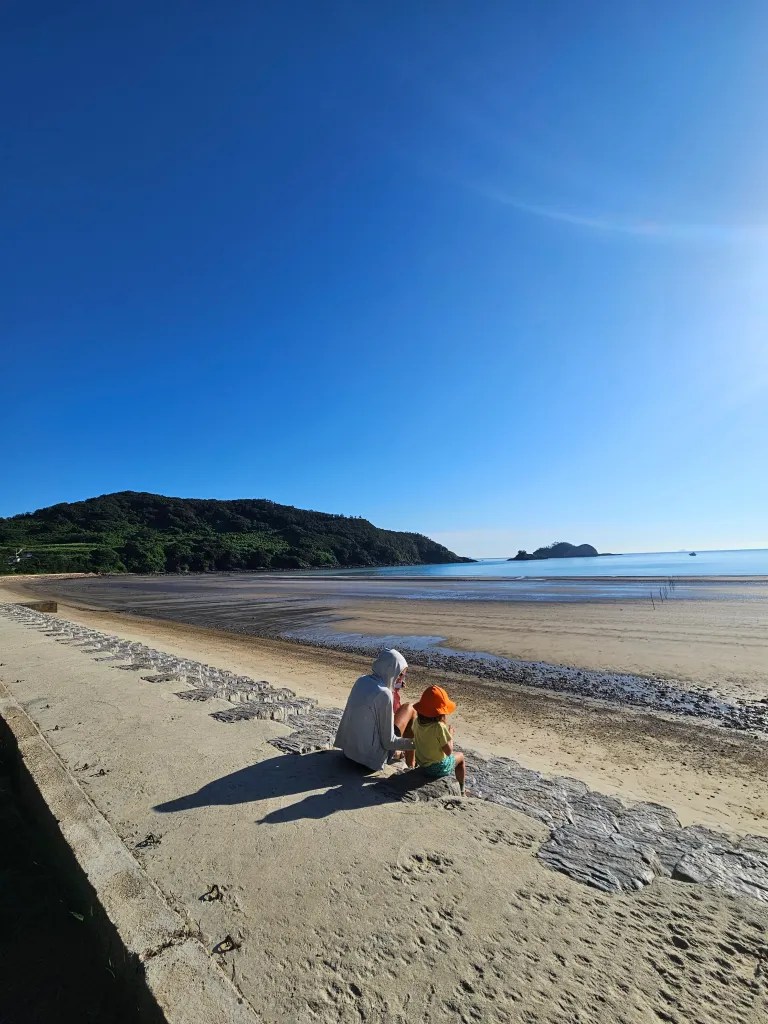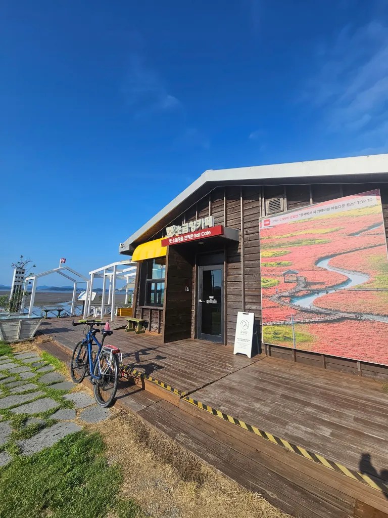 Même dans les endroits les plus reculés, la Corée a toujours de jolis cafés à proposer. On y commande des boissons fraîches avant d’aller se promener au bord de l’eau. Enfin au bord de l’eau en temps normal car on ne sait pas pourquoi mais la mer se retire extrêmement loin de ce côté du pays, à une bonne centaine de mètres environ. Clémence en profite quand même pour faire une petite baignade. Nous retournons ensuite au village pour acheter de quoi manger sur le pouce et aller ensuite se coucher.