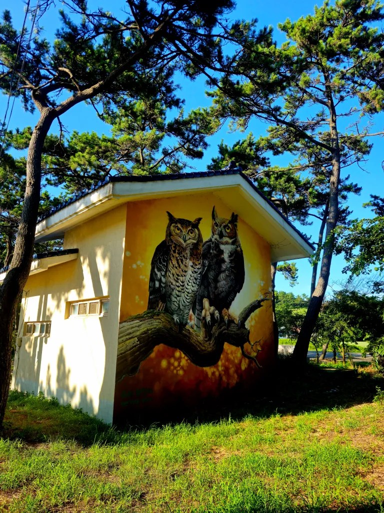 Le concept des hôtels « unmanned », donc sans staff, en Corée du Sud est très particulier. Ce sont souvent des établissements pour les couples qui cherchent de la discrétion et qui ne sont ainsi vus par personne. On accède aux chambres par des garages individuels pour stationner une voiture (ou des vélos) et un escalier mène à la chambre juste au-dessus. Un automate se trouve à l’entrée de la chambre : il n’y a qu’à payer et la chambre est à vous. Il n’y a pas de personnel sur place en théorie mais quelqu’un est toujours joignable et peut se rendre sur place en cas de pépin en moins de 2 minutes. Dans notre cas, l’automate ne prend pas la carte mais uniquement les billets. On rentre nos billets mais la machine les recrache peu importe le sens dans lequel nous les insérons. Nous essayons des dizaines de fois, certains arrivent par miracle à être acceptés mais au bout de 10 minutes infructueuses, nous finissons par appeler quelqu’un à l’interphone pour que la situation soit débloquée. Nous restons enfermés une heure pour prendre une douche et nous reposer au frais avant de ressortir découvrir une nouvelle plage à quelques kilomètres de là.