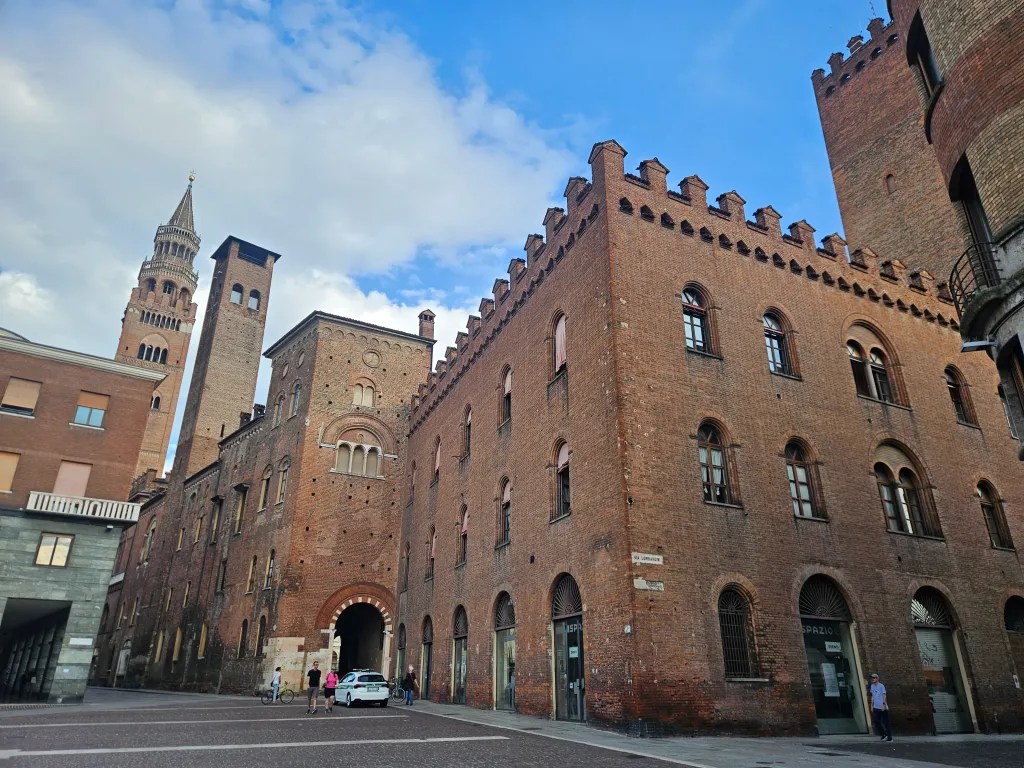 Cela nous permet des correspondances éclairs comme à Brescia où nous réussissons à passer du quai 3 au quai 14 en moins de 4 minutes pour ainsi attraper notre dernier train du jour qui va à Crémone. Les portes se referment sur nous et nous sommes heureux de ne pas avoir à attendre le suivant une heure plus tard. Nous nous rapprochons ainsi du fleuve Pô. Nous descendons à 15 heures à Crémone et nous sommes surpris de trouver une ville extrêmement cyclable. Le centre historique est complètement fermé aux voitures, ce qui rend l’atmosphère paisible et familiale. Après avoir posé les affaires à l’hôtel, nous ressortons marcher.