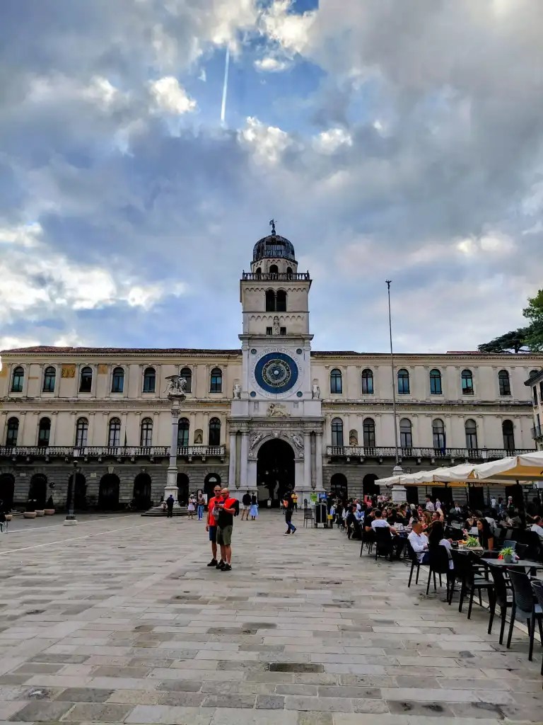 https://strava-embeds.com/embed.jsNous nous sommes encore mis en banlieue proche d’une grande ville car nous redoutons de devoir les traverser à vélo. Le prix des logements fait aussi partie de l’équation car il est presque impossible de trouver des habitations à des prix abordables (par abordables, entendre moins de 80€ la nuit). Nous ne sommes qu’à dix minutes en train de Padoue et après la douche, nous attendons que la pluie cesse pour aller visiter cette jolie ville. Forte de 200 000 habitants, c’est presque une cité éternelle car elle existait déjà avant Jésus-Christ. On peut y flâner à pied ou à vélo dans un réseau dense de rues à arcades qui mènent sur des places toutes plus mignonnes les unes que les autres.
